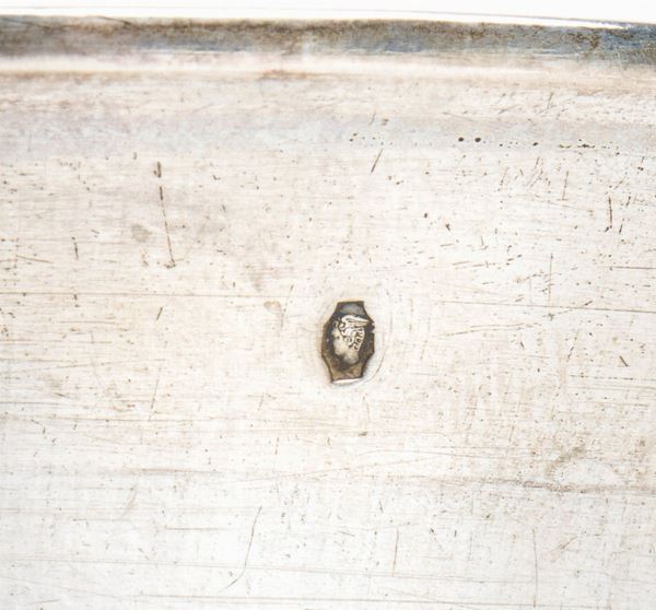 of cylindrical shape resting on leafed feet, the body openworked and decorated with grape shoots and vine leaves. Removable inner containers. Hallmarked with the French export hallmarks 'Mercury's Head' for small objects in use since 1878 and with the hallmark of an unidentified silversmith.