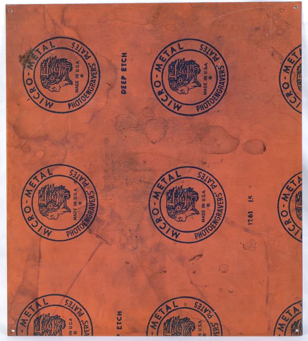 The award/recognition is made on a metal plate by the company MICRO METAL - Made in USA with the photo-engraved plates process as highlighted on the back by the stamp bearing the words PHOTOENGRAVER'S PLATES. With this engraving process, the award simulates a printing clichΓ© for a newspaper page, in positive form.