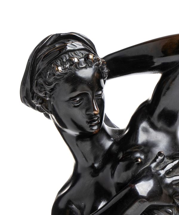 The bronze, which could be part of the refined grand tour production, maintains the same typical elements of the original casting, for example the gesture of the hand and the squared nails, so typical of Giambologna's style.