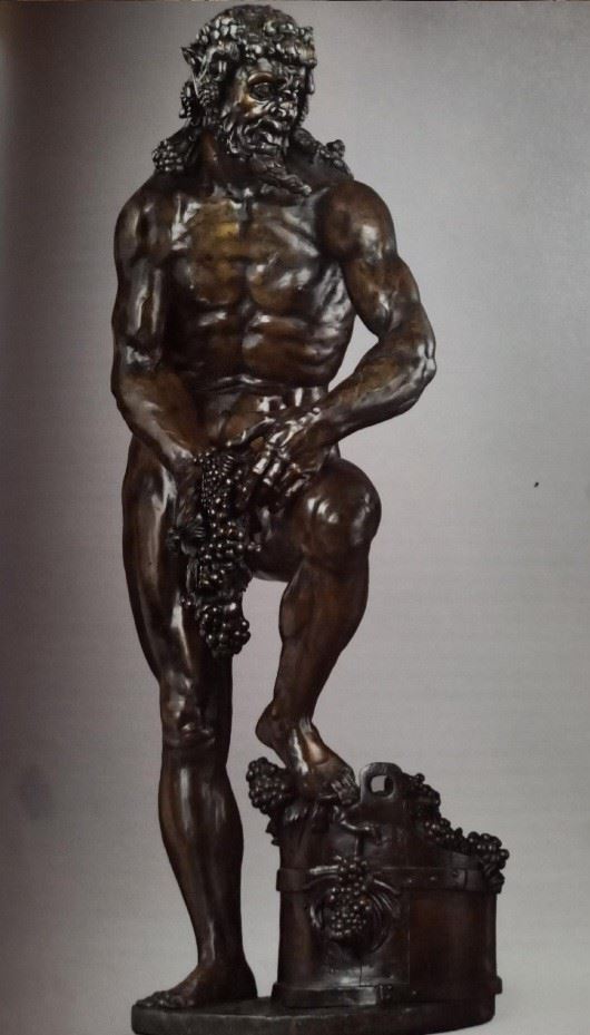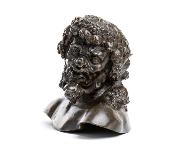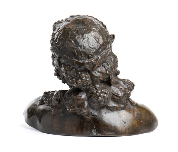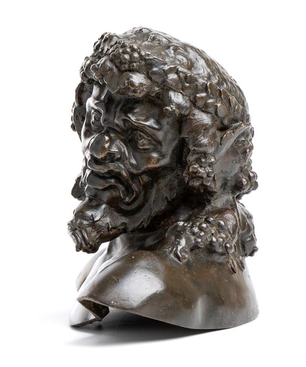 The bust is taken after a full-body sculpture of Adriaen de Vries, now in the Hill Collection. When it appeared at Sotheby's in the first decades of the last century it had been attributed to a Nordic follower of Giambologna. Susanna Zanuso connected it to the nymphaeum in Villa Litta in Lainate, Milan, where the Bacchus sculpture was placed on a high column to splashed water from various holes onto visitors in a playful way typical for Italian Renaissance gardens. Zanuso attributed it to Pelliccioni, a Lombard sculptor working in the Milan cathedral workshop. The bronze passed through international auction and entered Hill Collection, where it was attributed by Claudia Kryza Gersch to Adriaen de Vries, one of Giambologna's major students.