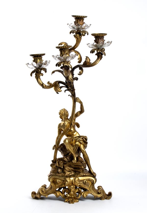 Fine pair of sculptural candlesticks composed of a nymph and a satyr holding a stem with the candle holders.