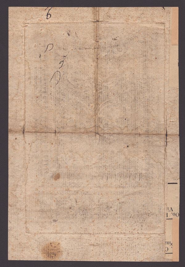 Beautiful impression on laid paper. A copy in good condition except for the central horizontal fold and traces of a vertical fold. Some short tears along the folds. One stain, signs of light foxing and browning of the paper.