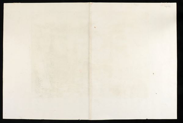 Printed on two sheets of joined laid paper with watermark ("Bracciano" and countermark). Sheet in good condition except for residues of brown scotch tape at the top, a small well-restored tear at the bottom right and a very small rust stain in the center of the composition.