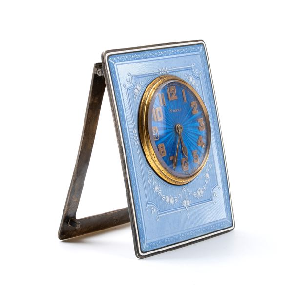 Art Déco silver and enamels table clock, Switzerland, 1920s - 1930s