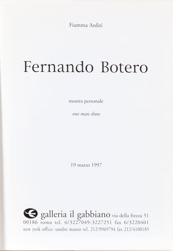 Cat. exhibition, Fiamma Arditi, Fernando Botero - one man show, Galleria Il Gabbiano, Rome, 19th March 1997