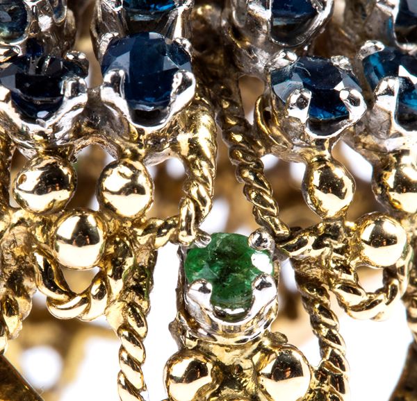 N. 30 sapphires estimated to weigh a total of approx. 3.77 ct, and n. 13 emeralds estimated to weigh a total of approx. 0.50 ct, as gauged and graded in the mount.
