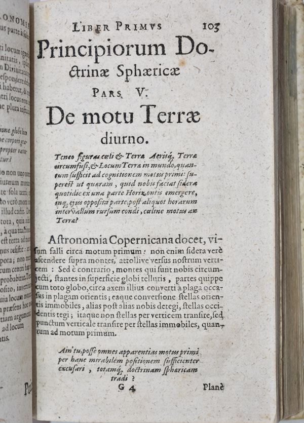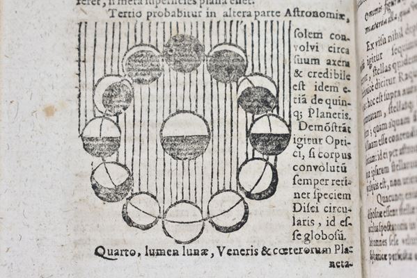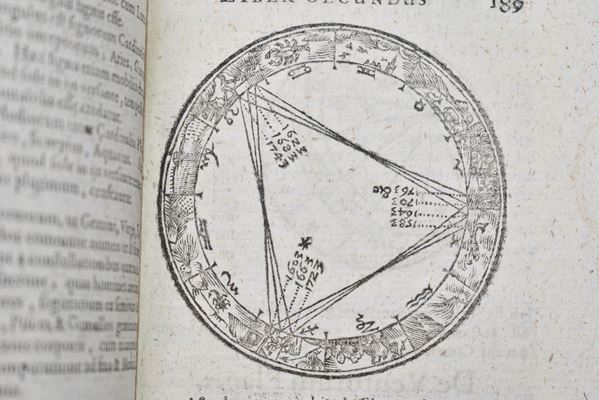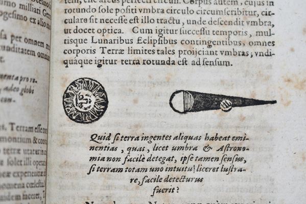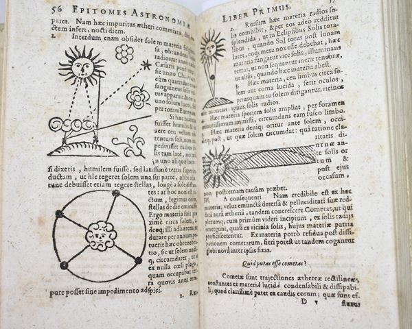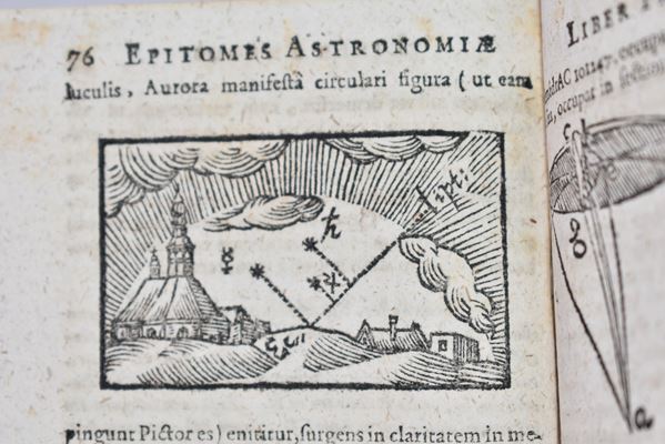 Seventeenth-century scientific illustration with the First edition (Linz, 1618) of the first volume (Books I-III) of the collection of studies on the heliocentric system by Johannes Kepler (1571-1630, German astronomer and mathematician). In it, K. illustrated the Copernican system against the backdrop of a reorganization of astronomical science, now divided into five areas: historical, optical, physical, arithmetic and mechanical. Each of these respectively included observations, hypotheses, bases for hypotheses, tables, calculations and instruments. Divided into seven books, published between 1618 and 1621, the Epitome covers much of Kepler's earlier thought, as well as his later positions on physics, metaphysics and archetypes. Because of the book's support for heliocentrism, the first volume was placed on the Index of Prohibited Books on 28 February 1619. A good copy with light foxing and browning, a slight marginal water stain; small defects such as trimming of 2 leaves (**2 and **3) down to the text; restoration to the lower corner of the first 8 leaves. See Carli-Favaro 76, 92; Caspar 55, 66, 69; Cinti 60, 72, 67; Houzeau-Lancaster 11831; PMM 112; Sotheran I, 114; Treccani.