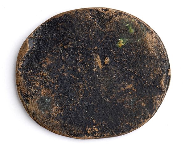 Oval bronze plaque, brown patina; mm 64.0 x 54.2; gr 54.5.