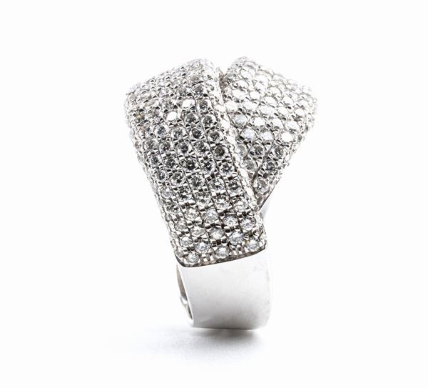 doppia fascia incrociata in oro bianco 18k impreziosita da pavé di diamanti.