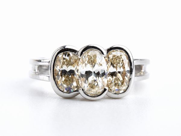 N. 03 diamanti di forma ovale, taglio brillante modificato, rispettivamente 0,55 ct, 0,43 ct e 0,45 ct circa, J-K, VVS.