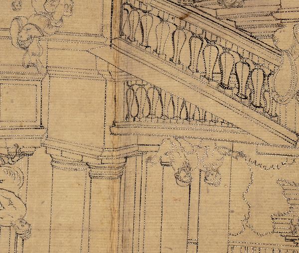 Penna, inchiostro e matita, e spolvero, su carta pesante beige