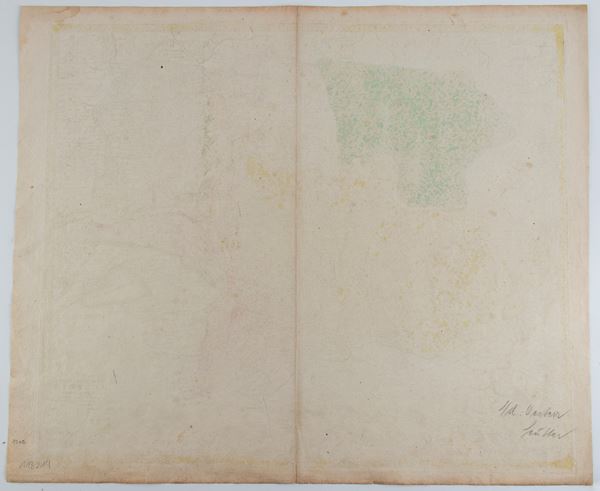 Stampa colorata a mano, stampata su carta vergata con filigrana. Foglio con margini preservati e consueta piega editoriale, in buono stato di conservazione salvo brunitura uniforme della carta.
