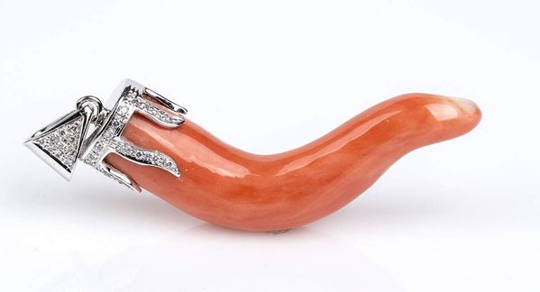 Pendente in oro, corallo Cerasuolo e diamanti...