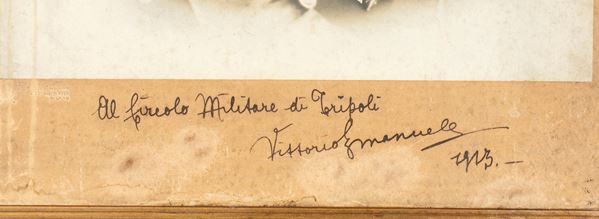 Fotografia di Vittorio Emanuele III al circolo militare di Tripoli, con dedica...