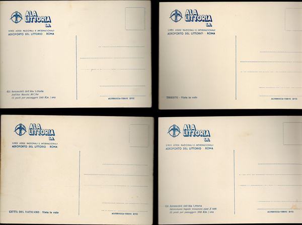 Lotto di otto cartoline Ala Littoria SA, raffiguranti Roma...