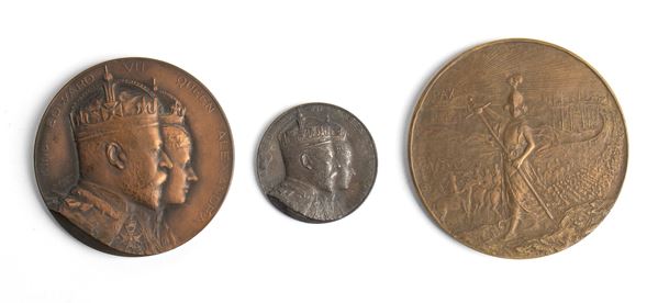Lotto di tre medaglie commemorative della incoronazione di Eduardo VII...