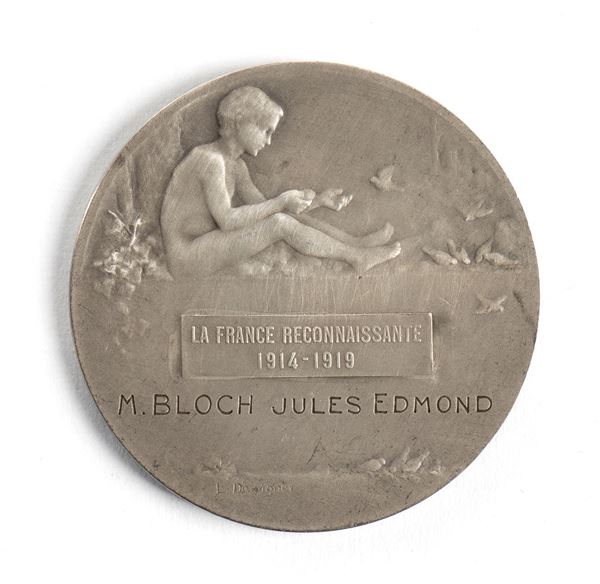 Medaglione statico LA FRANCE RECONNAISSANTE 1914-1919 / M. BLOCH JULES EDMOND...
