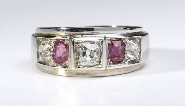 Anello a fascia in oro con diamanti taglio vecchio e rubini ..., Gioielleria moderna e contemporanea...