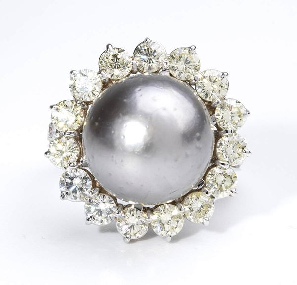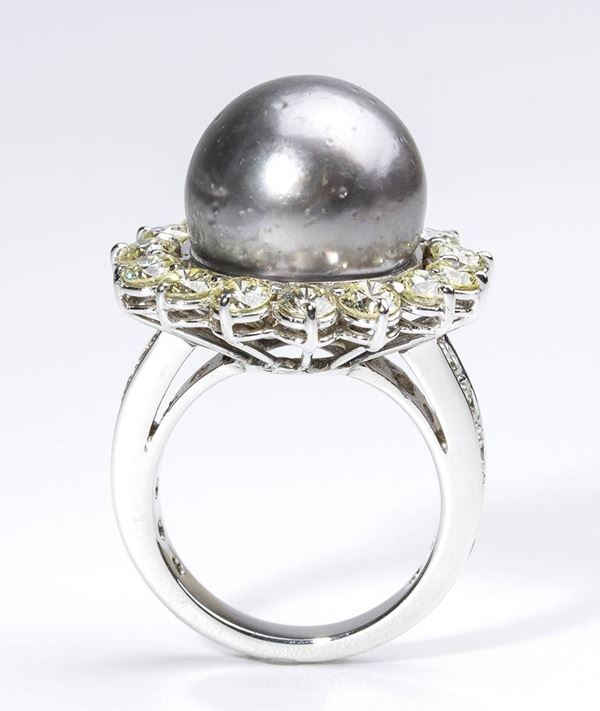 Anello con perla Tahiti e diamanti..., Gioielleria moderna e contemporanea...