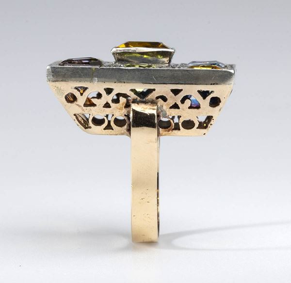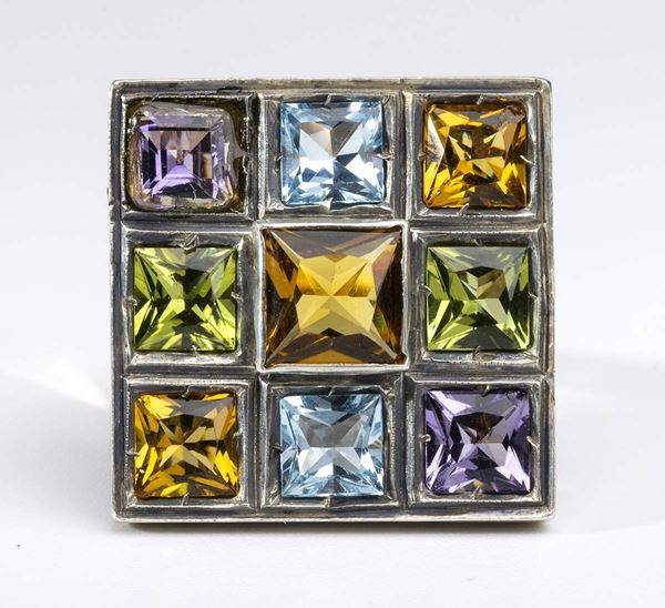 Anello in oro, argento e pietre di colore ..., Gioielleria moderna e contemporanea...