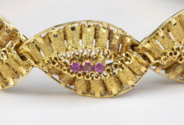 Bracciale oro giallo e rubini - anni '60..., Gioielleria antica e d'epoca...