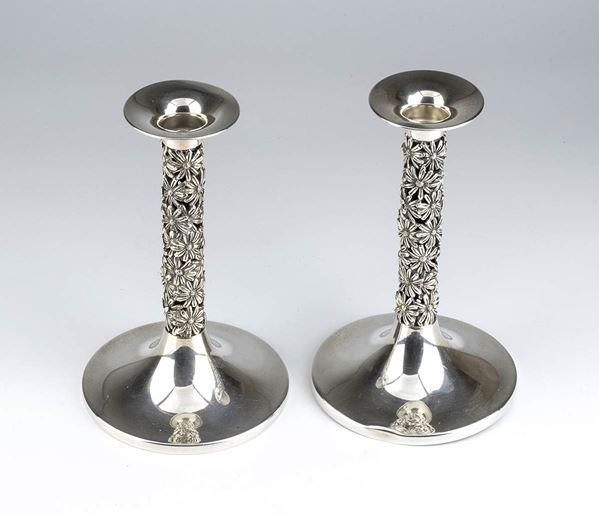 Coppia di candelieri italiani in argento - XX seccolo, argentiere RASPINI GIOVA..., Argenti del XX secolo...