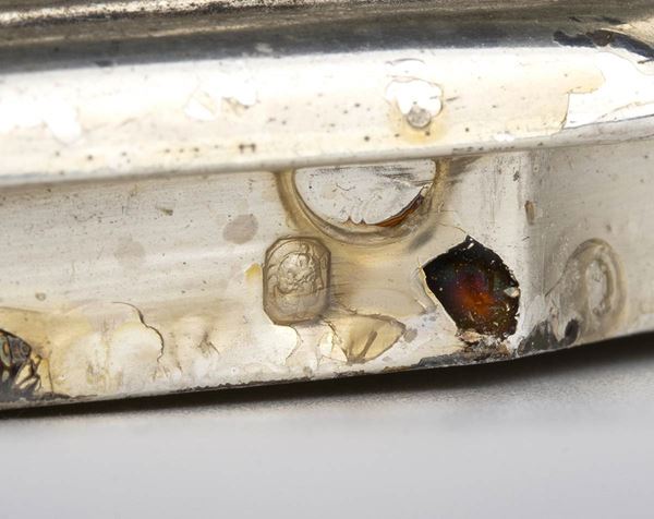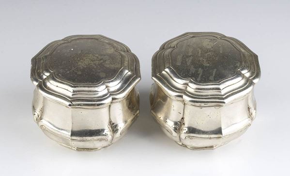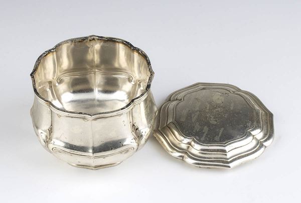 di forma circolare con nervature verticali. Coperchio con chiusura ad innesto. Punzonati con marchi francesi post 1838 in uso a Parigi per l'argento 950/1000, argentieri Andre Aucoc (1877-1911).