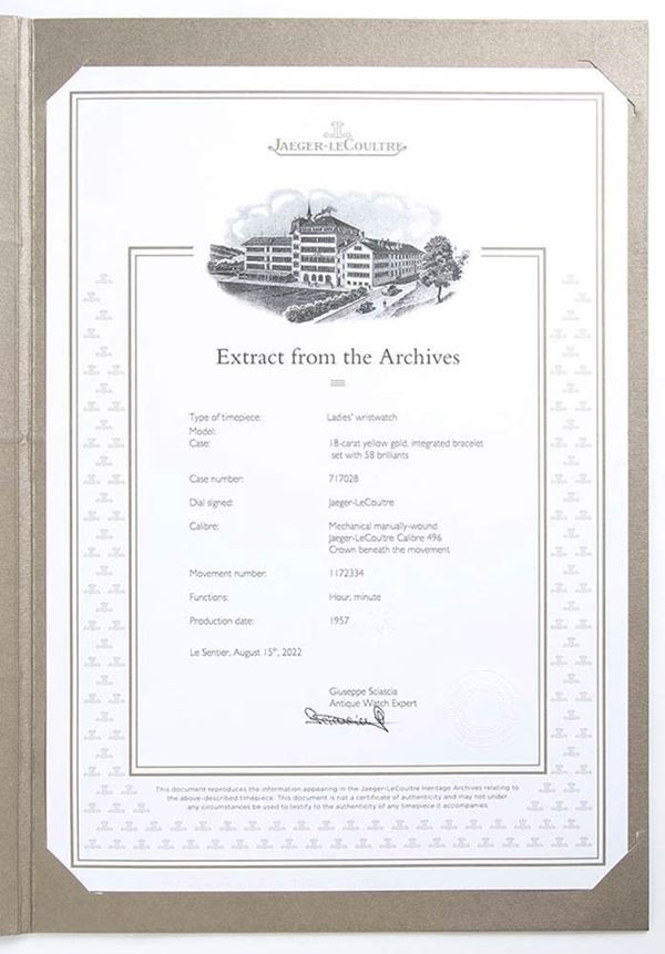 Accompagnato da un estratto degli archivi Jaeger-LeCoultre.