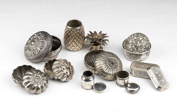Lotto di nove scatoline in argento Birmania, XIX - XX secolo..., Argenti antichi orientali...