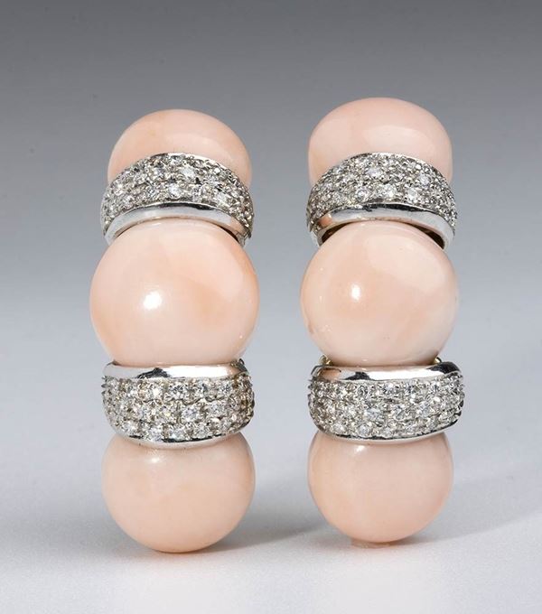 Orecchini in oro, corallo rosa e diamanti ..., Gioielleria moderna e contemporanea...