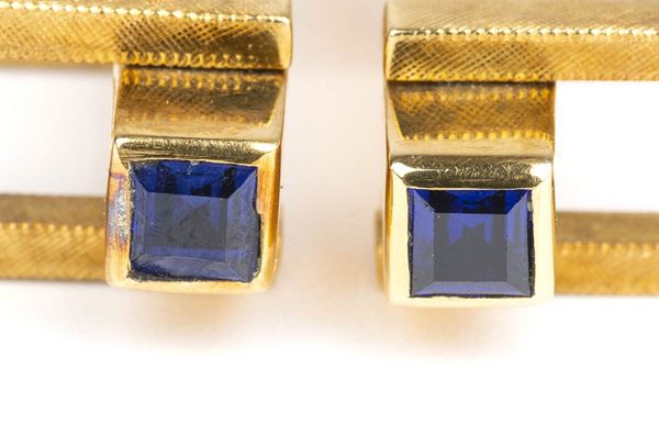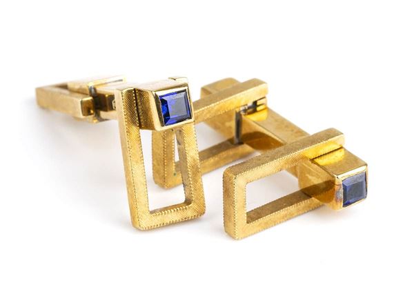Paio di gemelli da polso in oro giallo con zaffiri sitetici..., Gioielleria moderna e contemporanea...
