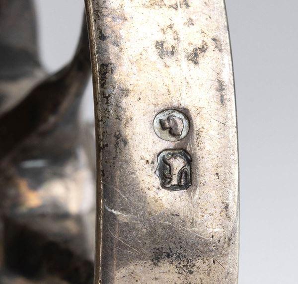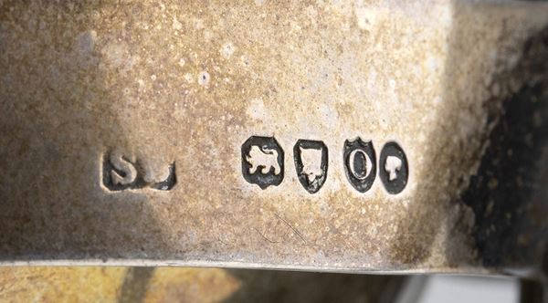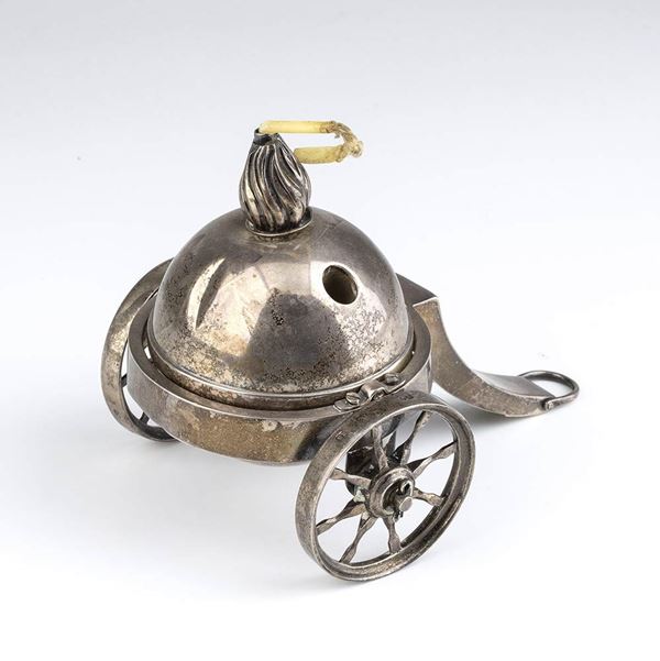 a forma di cannone di artiglieria. Argento 925/1000, serie completa di marchi Londra 1889-1900, argentiere Susanna Brasted.