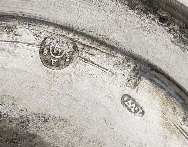 di linea neoclassica, base circolare e corpo liscio con decorazioni a palmette; manico ligno. Punzonato con i marchi in uso a Vienna all'inizio del XIX secolo per l'argento al titolo di 13 lothige /812/1000), argentiere "I.W.".