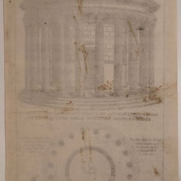 Raffigurazione della  tempio di Ercole al Foro Boario a Roma, parte di Speculum Romanae Magnificentiae. Hulsen 158
