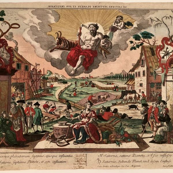 7 tavole rarffiguranti Saturno, Venus, Iupitero, Mercurio, Marte, la Luna e il Sole