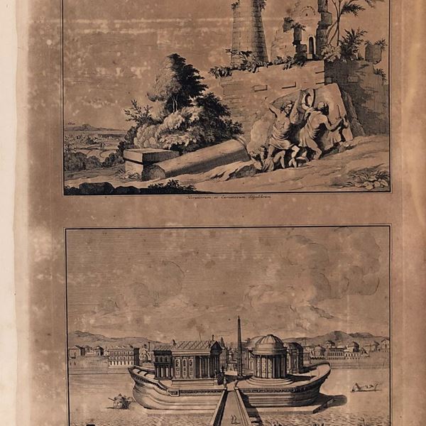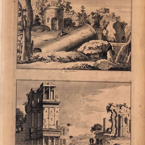 Lotto di tre tavole raffiguarnti monumento di roma ...