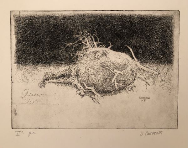 Firmato e datato in lastra. Firmato a matita in basso a destra. Stato unico, 5° prova d'autore, Bruno n. 42