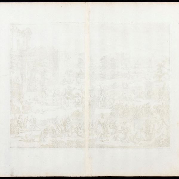 Tavola tratte della prima edizione del capolavoro di Willem Goeree il Vecchio, (1635-1711) editore e storico olandese, sulla storia del Popolo Ebreo, stampata ad Amsterdam, 1700. La Mosaïze historie fu un’opera molto importante sia sulla storia che sulle antichità ebraiche, considerata anche nel più ampio contesto del Medio Oriente. La pubblicazione ebbe un ruolo decisivo come testo di riferimento per l'iconografia della pittura biblica nel XVIII secolo, e divenne di conseguenza fondamentale anche per l'interpretazione della loro iconografia odierna.