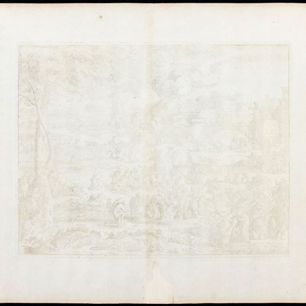Tavola tratte della prima edizione del capolavoro di Willem Goeree il Vecchio, (1635-1711) editore e storico olandese, sulla storia del Popolo Ebreo, stampata ad Amsterdam, 1700. La Mosaïze historie fu un’opera molto importante sia sulla storia che sulle antichità ebraiche, considerata anche nel più ampio contesto del Medio Oriente. La pubblicazione ebbe un ruolo decisivo come testo di riferimento per l'iconografia della pittura biblica nel XVIII secolo, e divenne di conseguenza fondamentale anche per l'interpretazione della loro iconografia odierna.