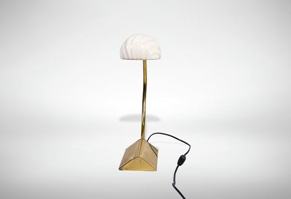 Lampada decorativa da tavolo con corpo in ottone realizzata da Tommaso Barbi.