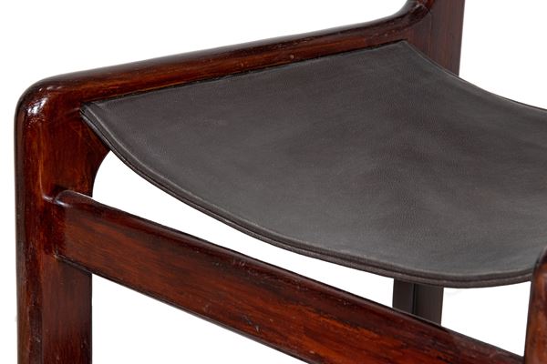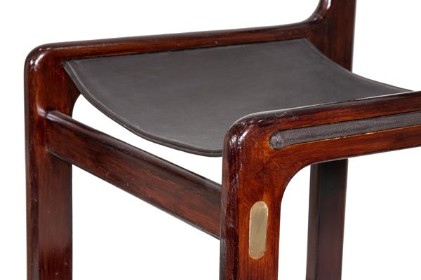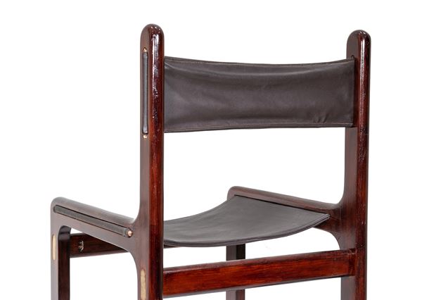 Set di 6 sedie vintage realizzate da Gallotti e Radice in palissandro, pelle ed ottone.