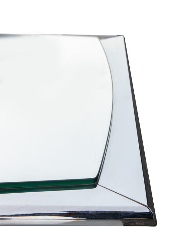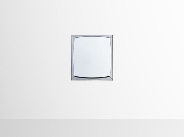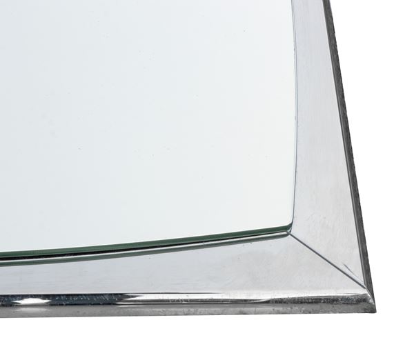 Specchio vintage da parete in vetro tagliato con telaio in acciaio cromato.