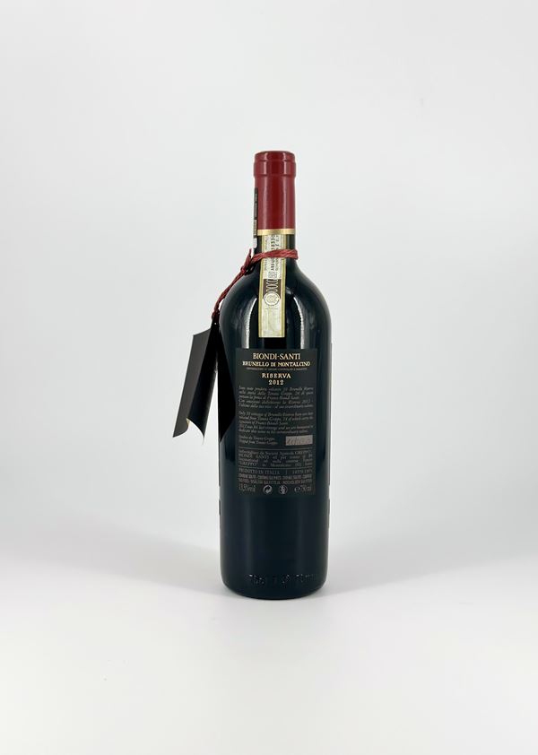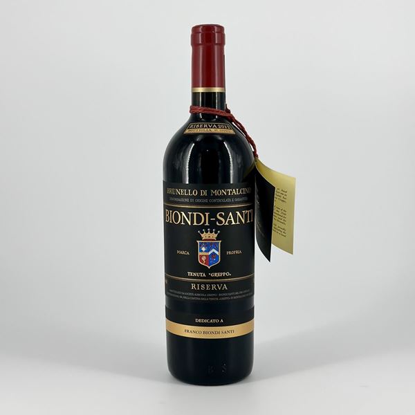 Biondi Santi, Brunello di Montalcino Riserva Tenuta Greppo Toscana, Brunello di Montalcino DOCG - 1 bottiglia (bt) annata 2012. Livello: entro il collo (WN), livello di colmatura standard. Condition report: etichetta e capsula in perfette condizioni.
