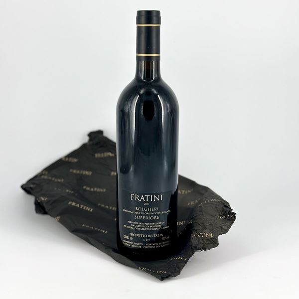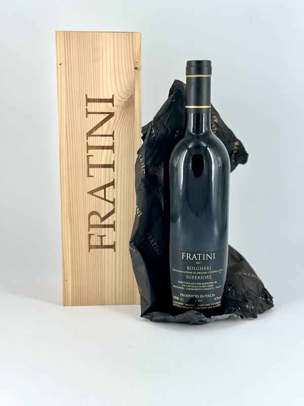 Fratini, Bolgheri Superiore  Toscana, Fratini - 1 bottiglia (bt) annata 2017.  Livello: entro il collo (WN), livello di colmatura standard.  Confezione : Scatola di legno originale (OWC).  Condition report: etichetta e capsula in perfette condizioni.