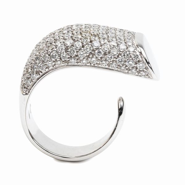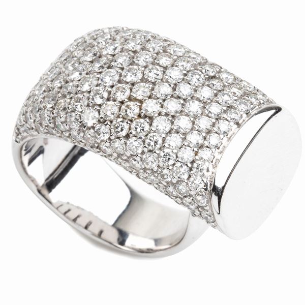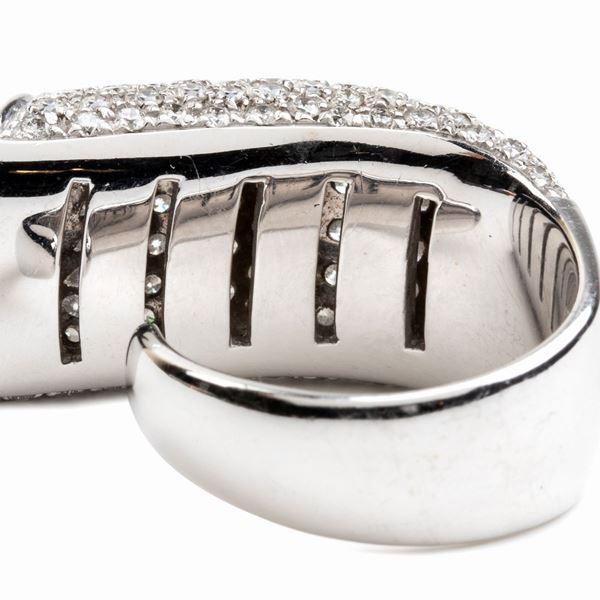 oro bianco 18k. Incastonato con pavé di diamanti taglio brillante 2,80 ct circa, E-F, IF-VVS. Punzonato "750 - 3098 AL".