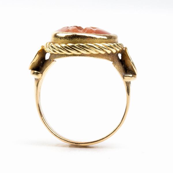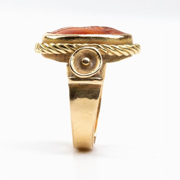 intaglio in corniola di forma ovale raffigurante un guerriero, montatura in oro con cordonatura perimetrale.