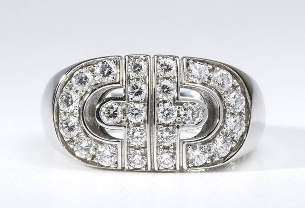 oro bianco 18k, firmato BVLGARI. Diamanti di forma rotonda taglio brillante 1.40 ct, E-F, IF-VVS. Punzonato "750 - 2337 AL - MADE IN ITALY".