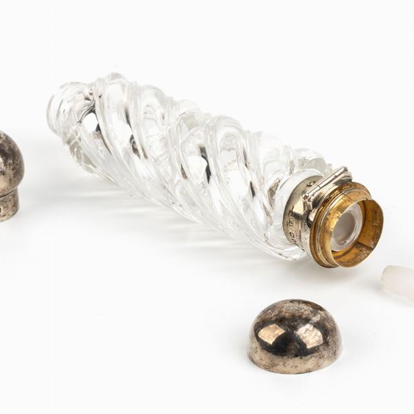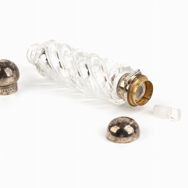 Due flaconi da profumo vittoriani inglesi in argento, princisbecco e vetro a doppia apertura - XIX secolo