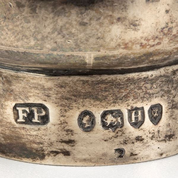 a) in argento 925/1000 con tappi sferici lisci, serie completa di marchi Londra 1883, argentiere Frederic Purnell.