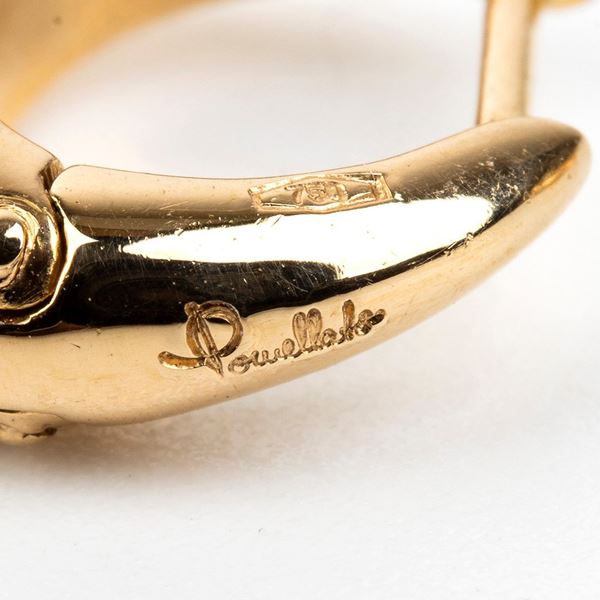 POMELLATO: paio di orecchini pendenti in oro, quarzo fume' e diamanti